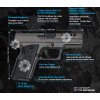 bezpečnosťou so svetoznámym systémom Safe Action. S odborne vytvoreným povrchom tennifer Coated, perforovaná 4140 oceľová doštička a priestorová kvalita, eloxovaný + fixačný pokovovaný hliníkový frézovaný rám. X-Fire sľubuje doživotnú službu. Celokovová konfigurácia, os nízkeho vývrtu hlavne a agresívna textúra na rukovätiach poskytuje maximálnu kontrolu a rýchlejšie obnovenie cieľa pri streľbe. Pištoľ je dodávaná s vymeniteľnou rukoväťou , panelmi pre lepšie prispôsobiteľné prostredie. Originálne hliníkové úchopové panely môžu byť tiež